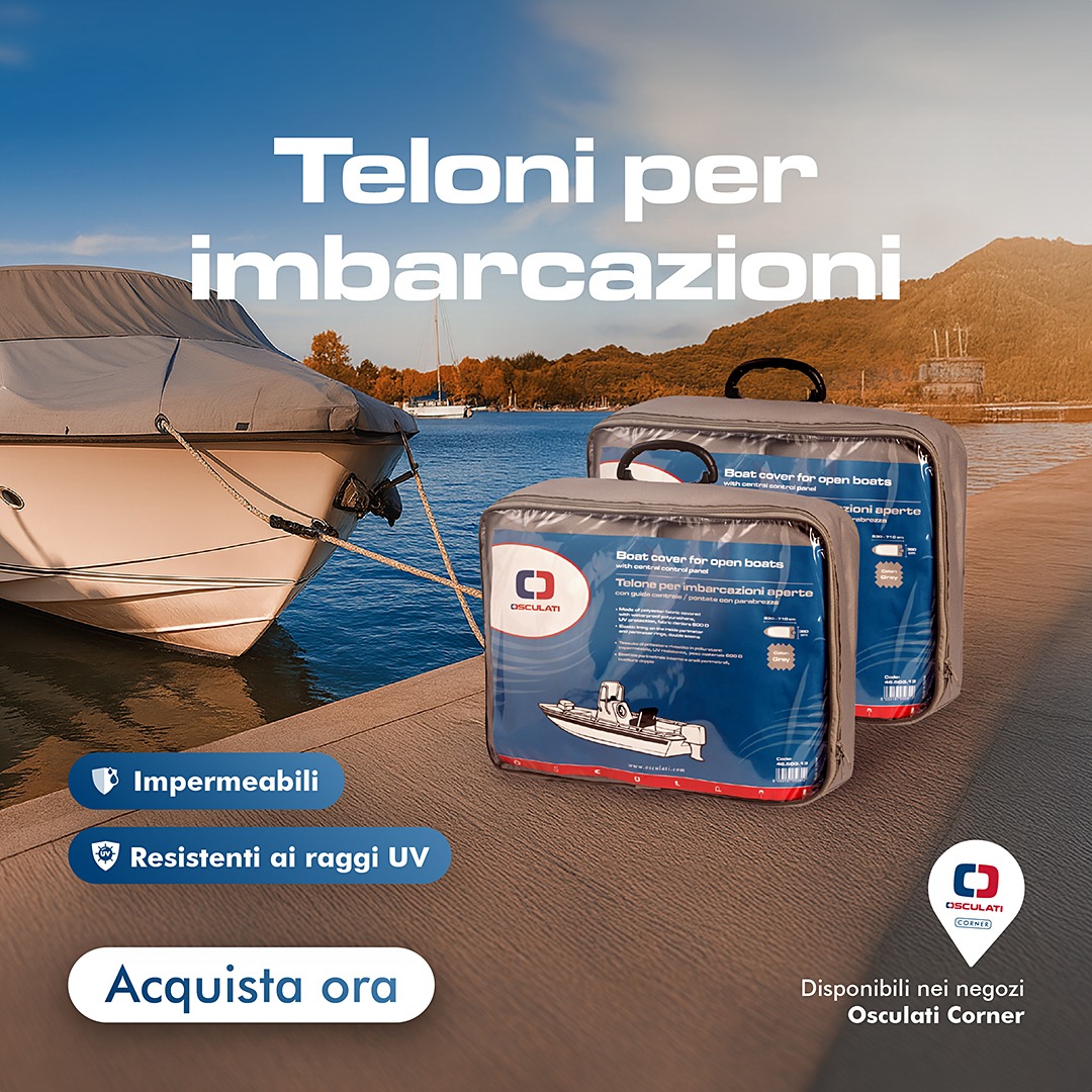 Dotato di elastico interno per aderire al meglio a qualsiasi tipo di imbarcazione e ha doppie cuciture per la migliore durata nel tempo. E' inoltre dotato di anelli a D antigraffio.