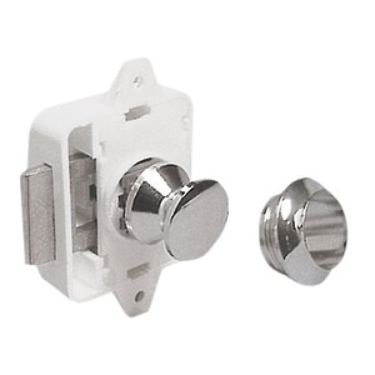 Per chiudere si preme il pulsante che resta a filo, per aprire si ripreme il pulsante che esce sbloccando le antine e costituendo nello stesso tempo un pomello di presa.