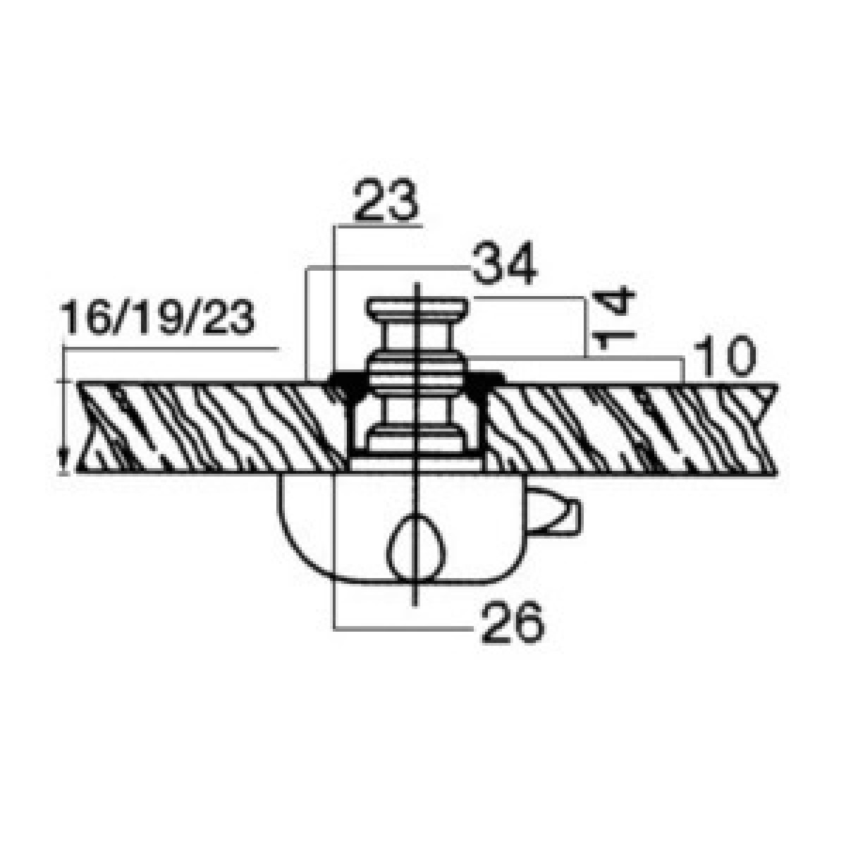 Montaggio dello scrocco con 2 viti e della ghiera dall’esterno con un foro Ø 26 mm.